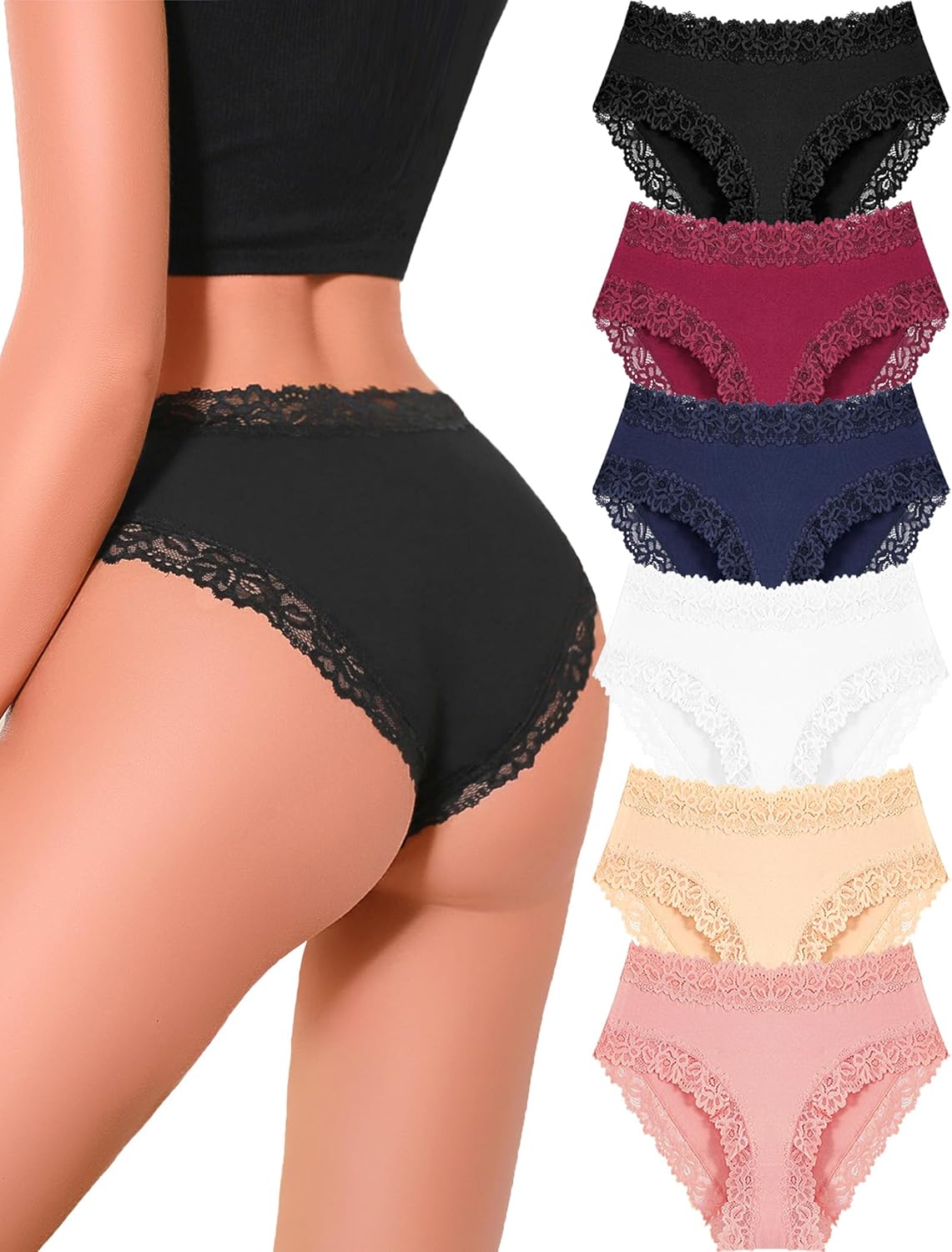 Womens Cotton Underwear Cheeky Bikini Panties for Women Sexy Lace Briefs Soft Stretch Underwear Pack 6